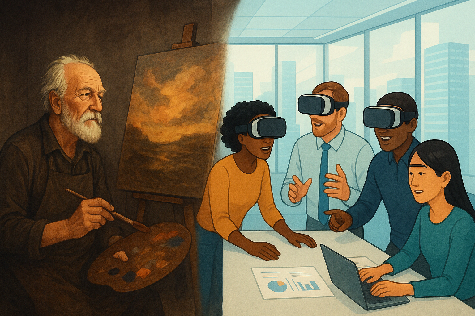 - 昔: アトリエに籠って一人で作品を創り上げる、孤高の天才像。これが巨匠のイメージでした。